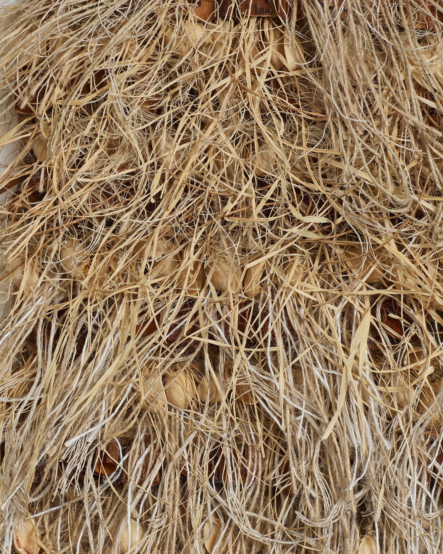 Materials: jute, raffia, linen, willow bark, hemp, pistachio nut shells, crocus leaf and grass