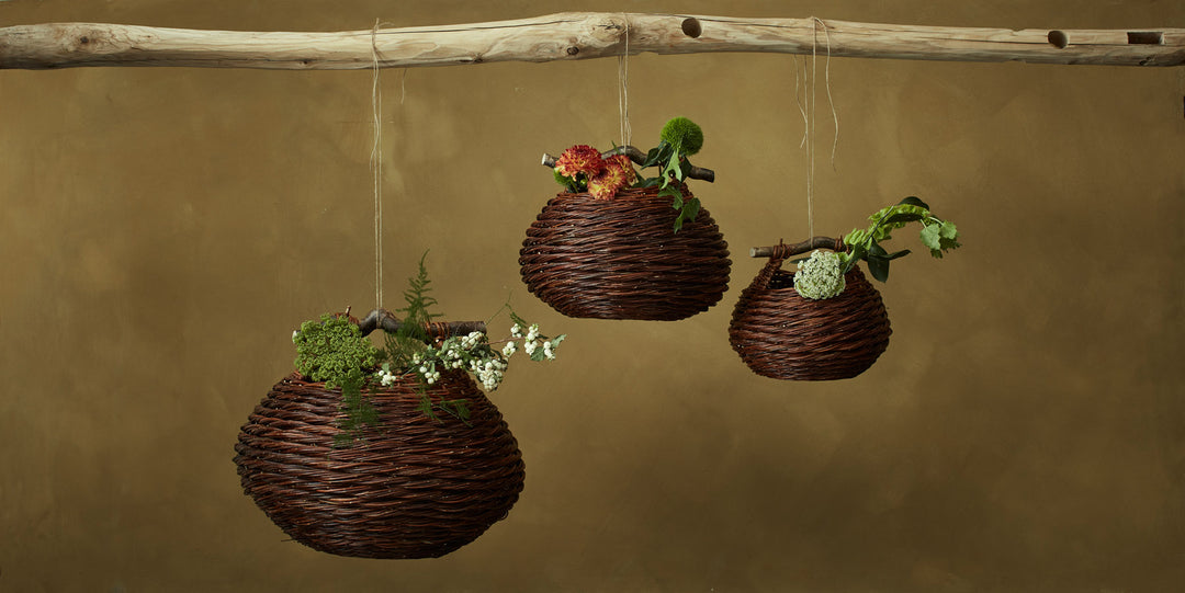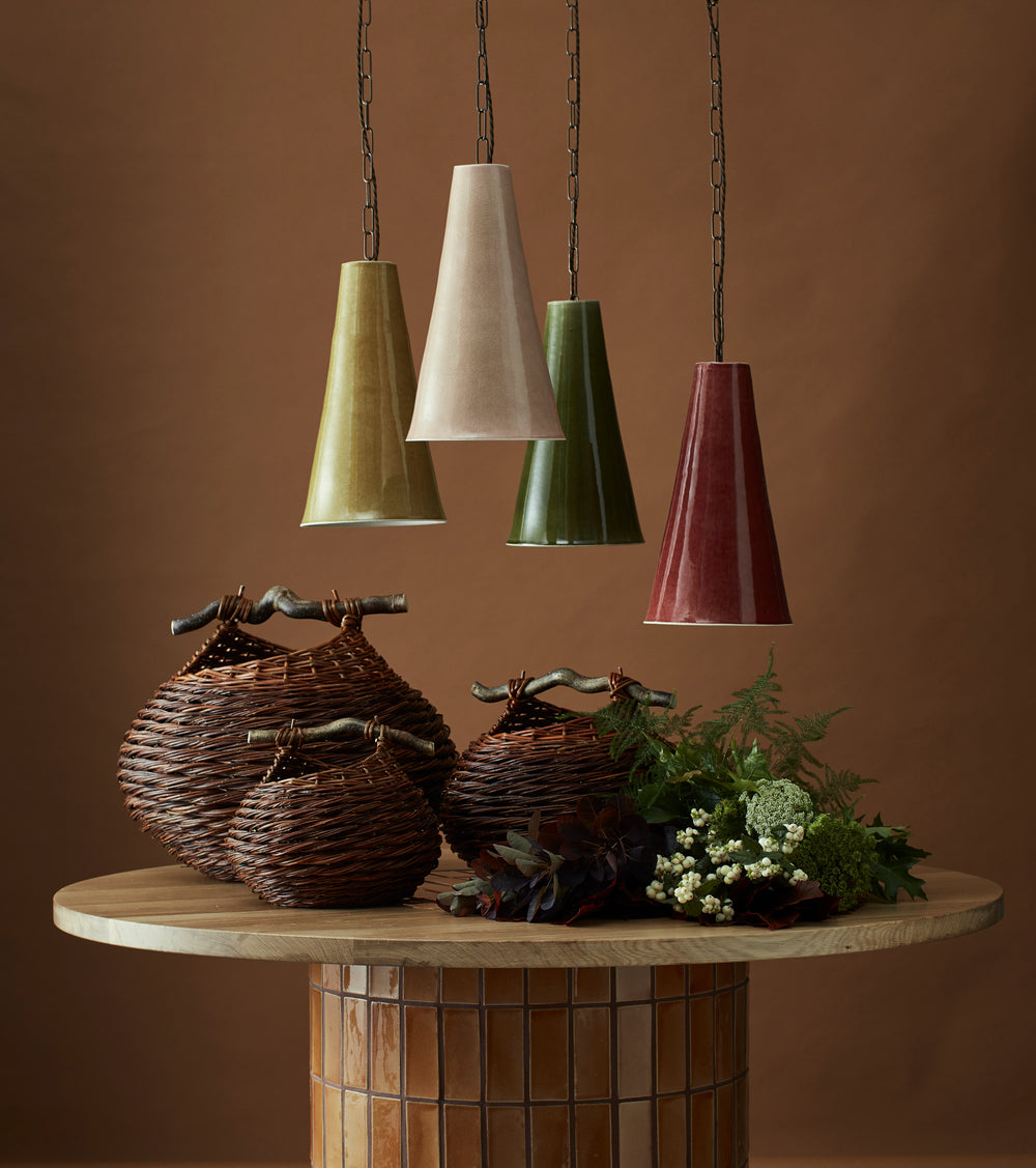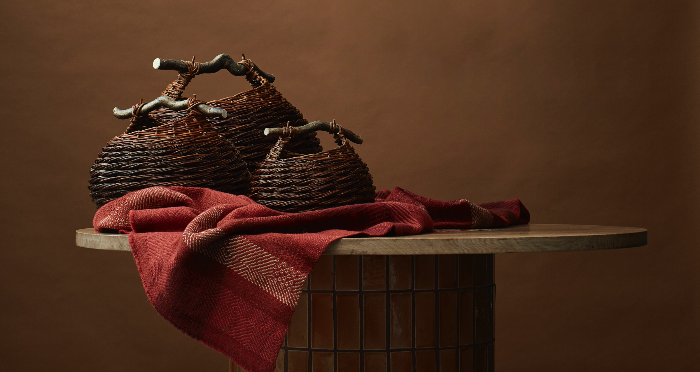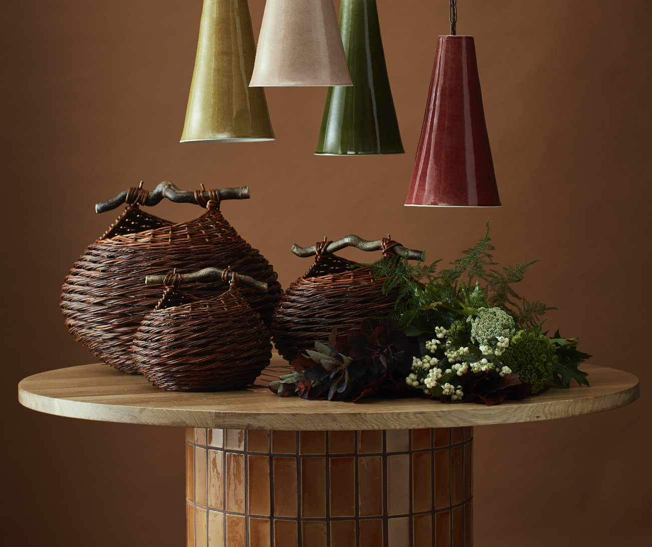 Rope Coil Basket Collection are three twisted hazel handled baskets, made by duo Sarah Loughlin and Marcus Wootton (Hopewood Baskets) from their Worcestershire home. The three baskets are made using sustainable and locally sourced material; hand-cut willow from the duo’s own willow beds and twisted hazel from a family member’s garden.