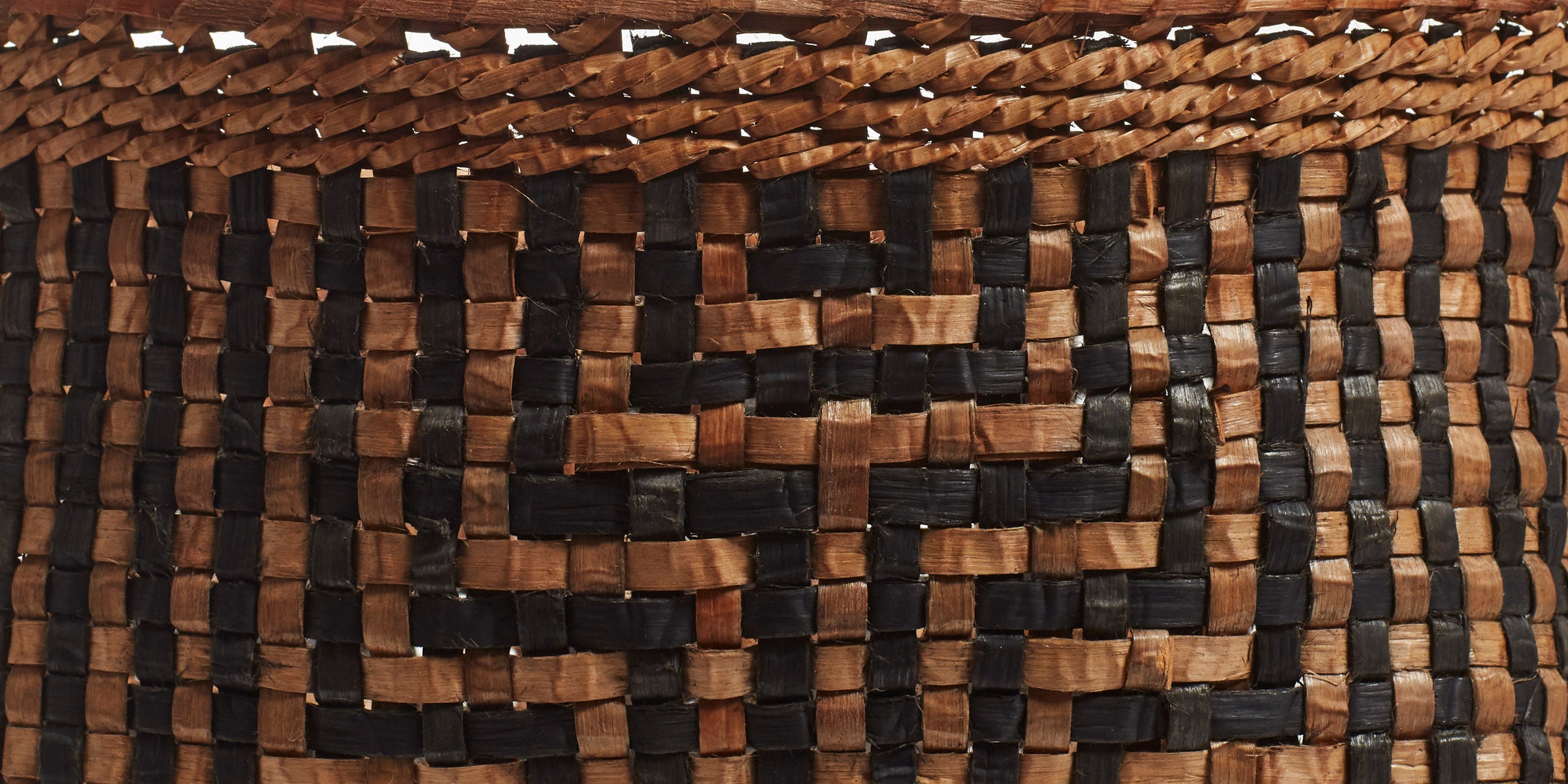 The Western Red Cedar Bark Basket collection by Nick McMillen is aset of 4 square based baskets, made using the inner bark from cedar trees (Thuja plicata). They vary in size from a 25cm diameter to a larger 55cm. Nick creates elaborate patterns influenced by scientific advances in biology, mathematics and physics. By merging these concepts with primitive technologies, he wants to explore the advantages and disadvantages of our modern world.
