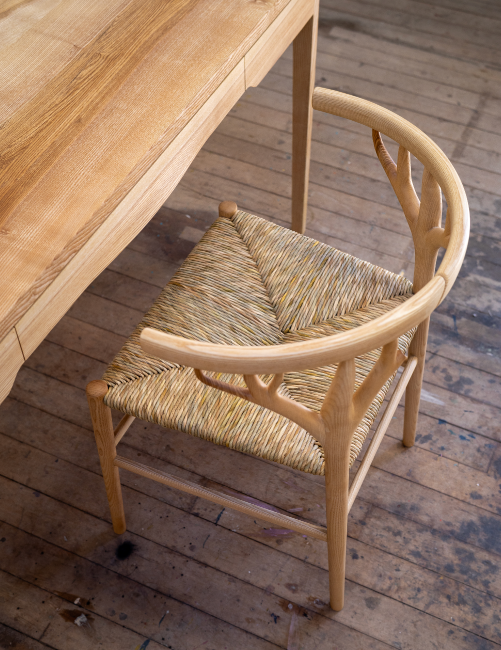 The Marchmont Workshop was founded by award-winning designers Richard Platt and Sam Cooper, who trained under master chairmaker Lawrence Neal in 2018. As one of the last remaining homes of the rush-seated chair, the workshop is dedicated to preserving and evolving this endangered heritage craft. Building on the legacy of Ernest Gimson and Phillip Clissett, Richard and Sam continue a lineage that stretches back through six generations of master to apprentice.