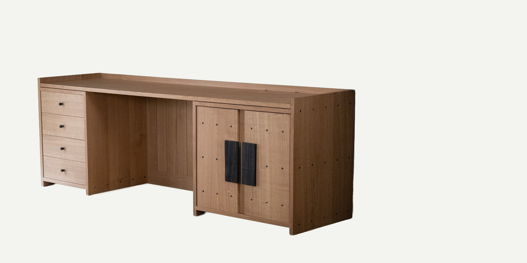 Together we have created The Nailed Collection which are all exceptional examples of vernacular furniture for the modern home that evokes a sense of abundance and togetherness. From pantries, to sideboards and dressers, these pieces are made with oak and riven ash handles, wrought iron nails and finished with a clear matt oil.