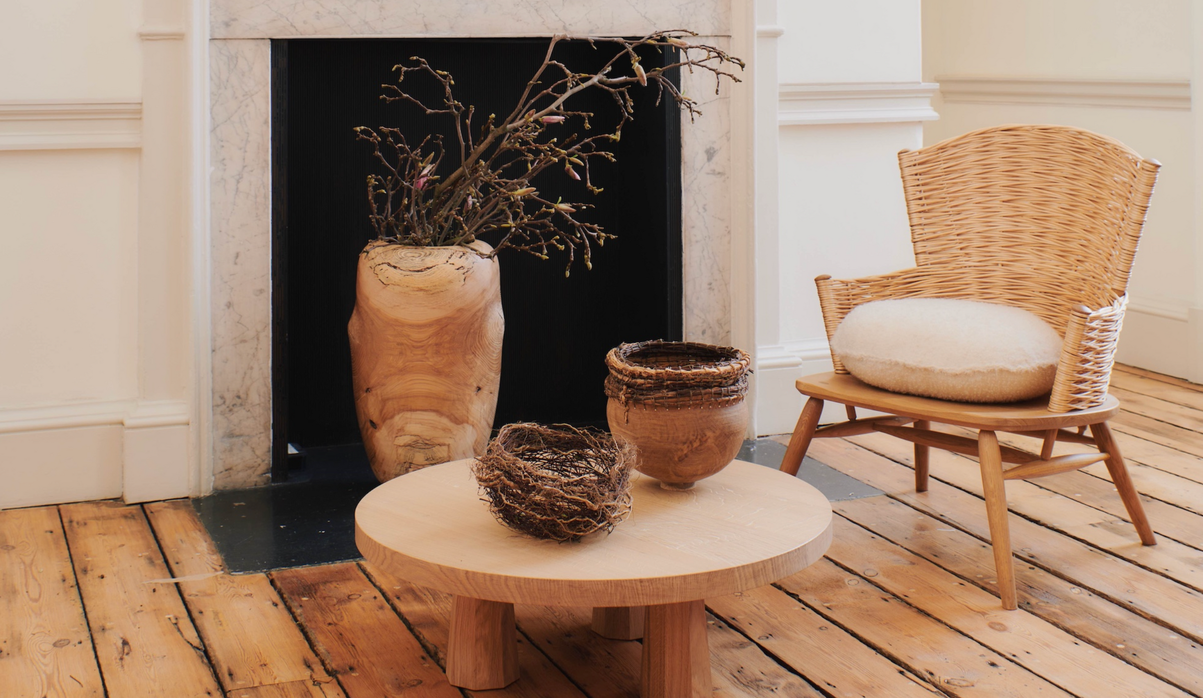 The Willow Collection is a unique collaboration, stemming from Gareth Neal’s popular Brodgar Collection. Inspired by the tactile qualities of willow, furniture maker Gareth Neal has partnered with master basket maker Annemarie O’Sullivan of Studio AMOS on this collection. The chairs, through their intricately woven backs, reference traditional basket-making techniques.